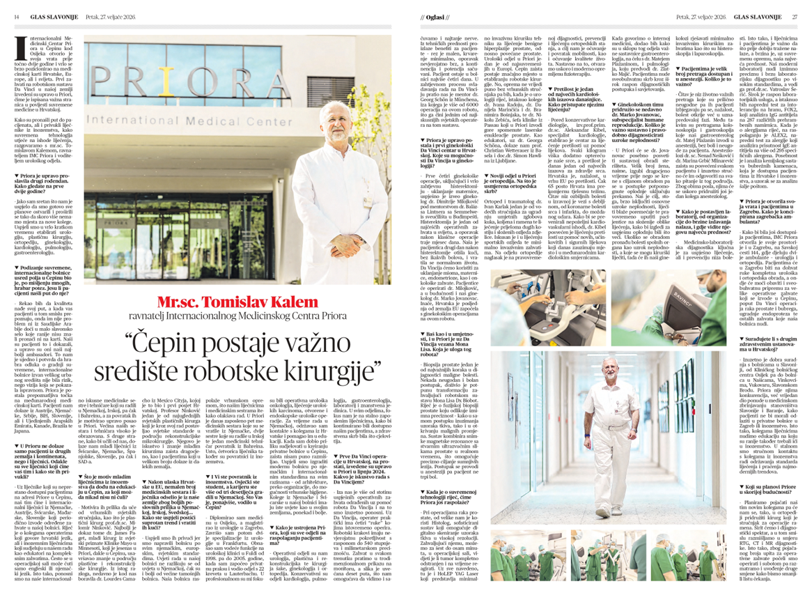 In the interview for Glas Slavonije, further development plans were also highlighted, including expanding the medical team, strengthening orthopedics, physiotherapy, and diagnostic services, and improving patient accessibility through the Priora outpatient clinic in Zagreb.
